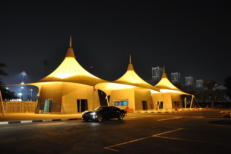 Bahrain International Circuit by Gulf Shade is a 39,277 square-meter project. By using the fabric material(s) PTFE B18089, the structure was designed and installed by Gulf Shade in Bahrain for the client Bahrain International Circuit. This project used the product Tensa Shade.