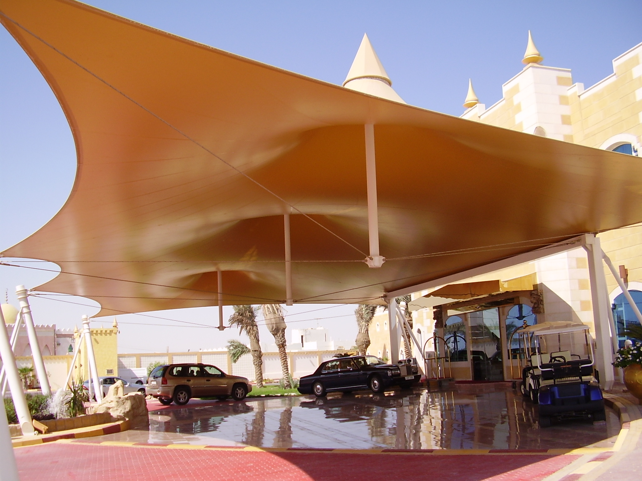 Widely used in sports stadiums, race tracks, and landscape shading applications, tensile fabric structures combine performance with visual elegance. Their minimal structural footprint and reduced material usage result in a significantly lower environmental impact compared to conventional construction methods, making them a refined and sustainable design choice.